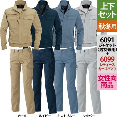 作業着 作業服 ブルゾン バートル BURTLE 作業着 上下セット 6091ジャケットと6099レディースカーゴパンツ SS-LL 作業服 おしゃれ 秋冬