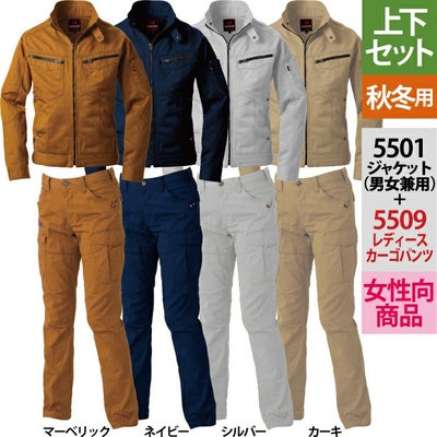 バートル BURTLE 作業着 上下セット 5501ジャケットと5509レディースカーゴパンツ SS-LL 作業服 おしゃれ 秋冬