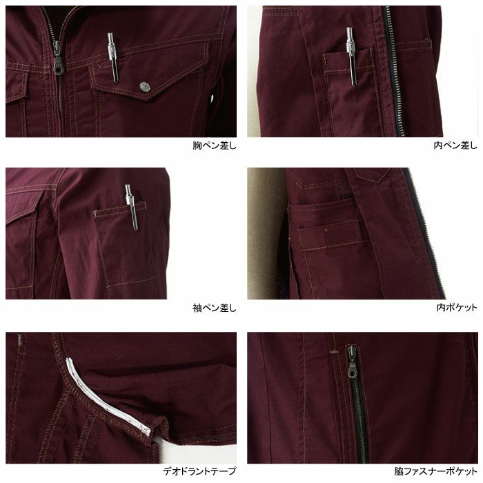 ●関連商品※545※548●春夏用●素材:綿98% ポリウレタン2% ●機能:胸ペン差し、袖ペン差し、デオドラントテープ、内ペン差し、内ポケット、脇ファスナーポケット、袖タック、ノーフォーク、サイドベンツ、袖アジャストボタン、金属ファスナー、金属ボタン(ドットボタン)●サイズ:S(胸囲/104、肩巾/44、着丈/59、袖丈/56)、M(胸囲/110、肩巾/46、着丈/60、袖丈/58)、L(胸囲/114、肩巾/48、着丈/61、袖丈/60)、LL(胸囲/118、肩巾/50、着丈/63、袖丈/62)、3L(胸囲/124、肩巾/52、着丈/65、袖丈/64)、4L(胸囲/132、肩巾/54、着丈/67、袖丈/64)、6L(胸囲/142、肩巾/57、着丈/70、袖丈/64)●カラー:ネイビー、グレー、ボルドー