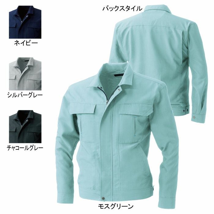 ●関連商品※115※118※119●春夏用●素材:ポリエステル 100% ●特徴:独特な生地感に加え、肌離れの良さ、ストレッチ性、イージーケア、消臭(テープ)機能が付いたロープライスユニフォーム。胸プリーツポケット、ノーフォークメッシュ、さわやかな生地感●機能:背裏メッシュ、胸ペン差し、袖ペン差し、消臭テープ、裾アジャストボタン、ノーフォークメッシュ、樹脂ファスナー、金属ボタン(ドットボタン)、胸ポケット口隠しマジックテープ●サイズ:M(胸囲/114、肩巾/48、着丈/63、袖丈/56)、L(胸囲/118、肩巾/50、着丈/65、袖丈/58)、LL(胸囲/122、肩巾/52、着丈/67、袖丈/60)、3L(胸囲/126、肩巾/54、着丈/69、袖丈/62)、4L(胸囲/132、肩巾/56、着丈/69、袖丈/62)、6L(胸囲/144、肩巾/58、着丈/69、袖丈/62)●カラー:ネイビー、シルバーグレー、チャコールグレー、モスグリーン