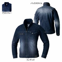 ●関連商品※75602ストレッチノータックカーゴパンツ●春夏用●素材:ストレッチデニム 綿65% ポリエステル33% ポリウレタン2%、フロント/金属ファスナー、ポケット/金属ファスナー、ボタン/金属ボタン●ストレッチ、背ネーム、左袖ポケット、革ラベル(人工皮革)●サイズ:S(胸囲/102、肩幅/42、袖丈/60、着丈/60)、M(胸囲/106、肩幅/44、袖丈/61、着丈/62)、L(胸囲/112、肩幅/46、袖丈/62、着丈/64)、LL(胸囲/118、肩幅/49、袖丈/63、着丈/66)、EL(胸囲/124、肩幅/51、袖丈/64、着丈/68)、4L(胸囲/130、肩幅/53、袖丈/65、着丈/69)、5L(胸囲/138、肩幅/56、袖丈/66、着丈/70)●カラー:インディゴ、ブラストブルー