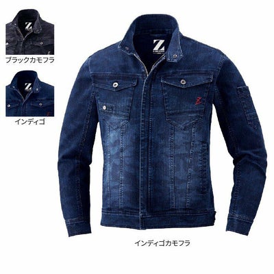 ●関連商品※71602ストレッチノータックカーゴパンツ●秋冬用●素材:ストレッチデニム 綿70% ポリエステル29% ポリウレタン1%、フロント/金属ファスナー、ポケット/樹脂ファスナー、ボタン/金属ボタン●ストレッチ、野帳対応、左胸二重ポケット、背当プリント、右ポケット内側ファスナー、左袖ペン差し、ワンポイント、内ポケット●サイズ:S(胸囲/100、肩幅/41、袖丈/60、着丈/60)、M(胸囲/104、肩幅/43、袖丈/61、着丈/62)、L(胸囲/110、肩幅/45、袖丈/62、着丈/64)、LL(胸囲/116、肩幅/48、袖丈/63、着丈/66)、EL(胸囲/122、肩幅/50、袖丈/64、着丈/68)、4L(胸囲/128、肩幅/52、袖丈/65、着丈/69)、5L(胸囲/136、肩幅/55、袖丈/66、着丈/70)●カラー:ブラックカモフラ、インディゴ、インディゴカモフラ