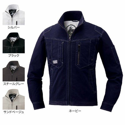 ●関連商品※71702ストレッチノータックカーゴパンツ※71802ストレッチノータックカーゴパンツ●秋冬用●素材:ストレッチツイル 綿98% ポリウレタン2%、フロント/金属ファスナー、ポケット/金属ファスナー、ボタン/金属ボタン●ストレッチ、胸ポケットがベルトに隠れないデザイン仕様、カーゴポケットがベルトに隠れないデザイン仕様、背当プリント、内ポケット、左袖ペン差し、革ラベル(人工皮革)●サイズ:S(胸囲/102、肩幅/42、袖丈/60、着丈/60)、M(胸囲/106、肩幅/44、袖丈/61、着丈/62)、L(胸囲/112、肩幅/46、袖丈/62、着丈/64)、LL(胸囲/118、肩幅/49、袖丈/63、着丈/66)、EL(胸囲/124、肩幅/51、袖丈/64、着丈/68)、4L(胸囲/130、肩幅/53、袖丈/65、着丈/69)、5L(胸囲/138、肩幅/56、袖丈/66、着丈/70)●カラー:ネービー、シルバー、ブラック、スチールグレー、サンドベージュ