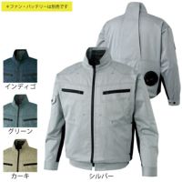 ●春夏用●素材:交織ストレッチライトツイル ポリエステル35%・綿64%・複合繊維(ポリエステル)1%、ファスナー/[フロント・ポケット]金属、ボタン/金属●帯電防止、ストレッチ、特許取得、バッテリーポケット、袖口Wボタン、保冷剤用ポケット、ファン用リング(TPU)、風気路●サイズ:M(着丈/64、肩巾/50、袖丈/54、胸囲/116)、L(着丈/66、肩巾/52、袖丈/56、胸囲/120)、LL(着丈/68、肩巾/54、袖丈/58、胸囲/124)、XL(着丈/70、肩巾/56、袖丈/60、胸囲/132)、4L(着丈/70、肩巾/58、袖丈/58、胸囲/140)、5L(着丈/70、肩巾/60、袖丈/58、胸囲/148)●カラー:インディゴ、シルバー、グリーン、カーキ