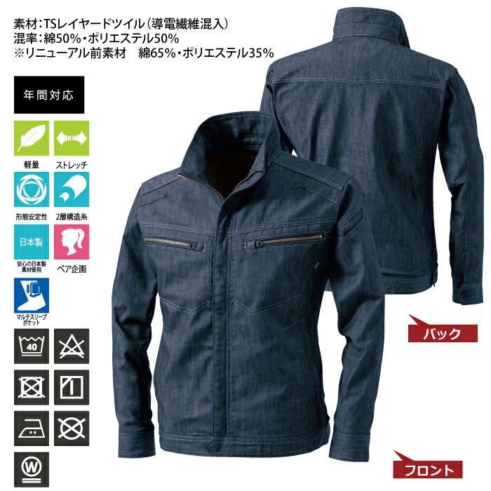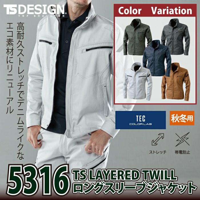 藤和 TSDESIGN 作業服 秋冬用 5316 TSLAYEREDTWILLロングスリーブジャケット SS-LL
