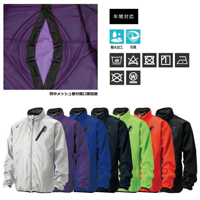 ●関連商品※8436カラージャンパー※84335ウインドブレーカーシャツ●オールシーズン用●素材:リップストップ ポリエステル100%●撥水加工、防風●サイズ:SS(着丈/66、胸囲/108、裄丈/79)、S(着丈/68、胸囲/113、裄丈/82)、M(着丈/70、胸囲/118、裄丈/85)、L(着丈/72、胸囲/123、裄丈/88)、LL(着丈/74、胸囲/128、裄丈/91)、3L(着丈/76、胸囲/133、裄丈/94)、4L(着丈/76、胸囲/139、裄丈/94)、5L(着丈/76、胸囲/145、裄丈/94)、6L(着丈/76、胸囲/151、裄丈/94)●カラー:シルバーグレー、パープル、ロイヤルブルー、ネイビー、ライトグリーン、オレンジ、ブラック