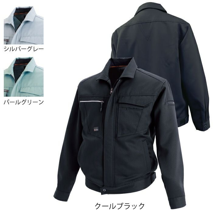 ●関連商品※1616ブルゾン※1613ノータックカーゴ※1605冷却シャツ※1611ノータックスラックス●秋冬用●素材:スーパーストレッチ(導電繊維混入) ポリエステル100%●ストレッチ、帯電防止、形態安定性、撥水加工、背裏メッシュ、ファスナー付ポケット、左胸・左袖ペン差し、裾アジャスター、楽WORK●サイズ:S(着丈/61、肩巾/44.5、袖丈/55、胸囲/103)、M(着丈/63、肩巾/46.5、袖丈/57、胸囲/108)、L(着丈/65、肩巾/48.5、袖丈/59、胸囲/113)、LL(着丈/67、肩巾/50.5、袖丈/61、胸囲/118)、3L(着丈/69、肩巾/52.5、袖丈/63、胸囲/123)、4L(着丈/69、肩巾/54.5、袖丈/63、胸囲/128)、5L(着丈/69、肩巾/56.5、袖丈/63、胸囲/134)、6L(着丈/69、肩巾/58.5、袖丈/63、胸囲/140)●カラー:シルバーグレー、パールグリーン、クールブラック