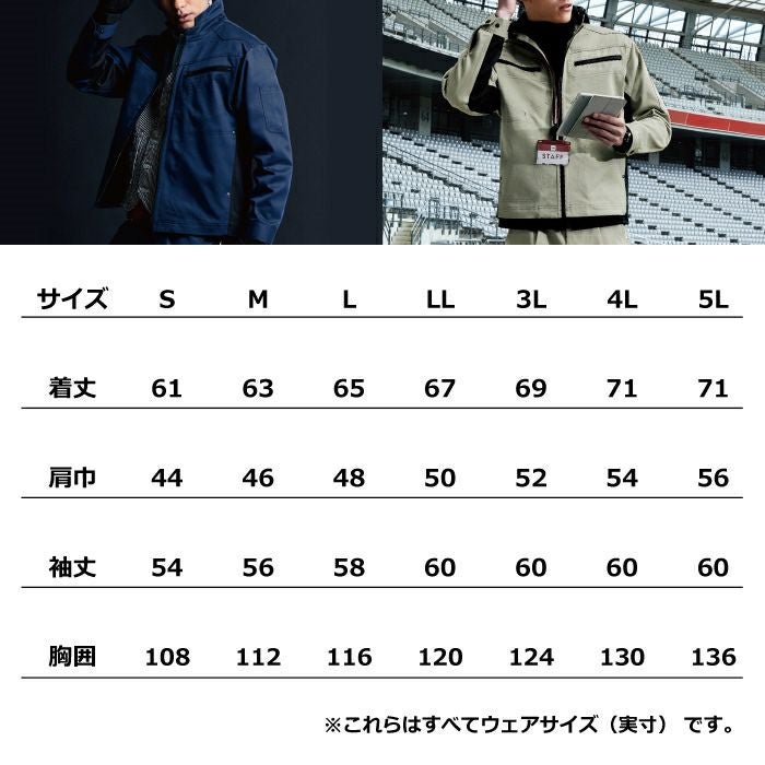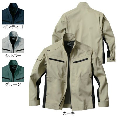 ●関連商品※WA21924ワンタックパンツ※WA21925ワンタックカーゴパンツ●秋冬用●素材:交織ストレッチツイル、ファスナー/[フロント]金属 [ポケット]金属、ボタン/[金属]、国内生地ポリエステル66%・綿33%・複合繊維(ポリエステル)1%●帯電防止素材、ストレッチ、トリカット、背裏メッシュ、袖口調整釦、両袖ポケット(左右)、消臭テープ(脇)●サイズ:S(着丈/61、肩巾/44、袖丈/54、胸囲/108)、M(着丈/63、肩巾/46、袖丈/56、胸囲/112)、L(着丈/65、肩巾/48、袖丈/58、胸囲/116)、LL(着丈/67、肩巾/50、袖丈/60、胸囲/120)、3L(着丈/69、肩巾/52、袖丈/60、胸囲/124)、4L(着丈/71、肩巾/54、袖丈/60、胸囲/130)、5L(着丈/71、肩巾/56、袖丈/60、胸囲/136)●カラー:インディゴ、シルバー、グリーン、カーキ
