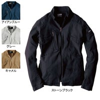 ●関連商品※2242ジョガーパンツ※2243カーゴパンツ●オールシーズン用●素材:ストレッチキャンバス●混率:綿97% ポリウレタン3%、樹脂ファスナー、金属ボタン(ドットボタン)●伸縮素材、洗い加工、[右胸]フルハーネスをしたままでも使える右胸ファスナーポケット、[ファスナー]持ちやすい大型ファスナー引手、[両脇]モノが落ちにくい両脇ファスナー付きポケット、[袖口]カフスアジャスター付き、[左袖]左袖ペン差し、[袖]ひじ立体カッティングで動きやすい●サイズ:S(肩巾/44、胸囲/105、袖丈/57、着丈/59)、M(肩巾/45.5、胸囲/108、袖丈/58、着丈/61)、L(肩巾/47、胸囲/111、袖丈/59.5、着丈/63)、LL(肩巾/48.5、胸囲/115、袖丈/60.5、着丈/65)、3L(肩巾/50、胸囲/119、袖丈/61.5、着丈/67)、4L(肩巾/51.5、胸囲/123、袖丈/62、着丈/69)、5L(肩巾/53、胸囲/127、袖丈/62、着丈/69)●カラー:アイアンブルー、グレー、キャメル、ストーンブラック