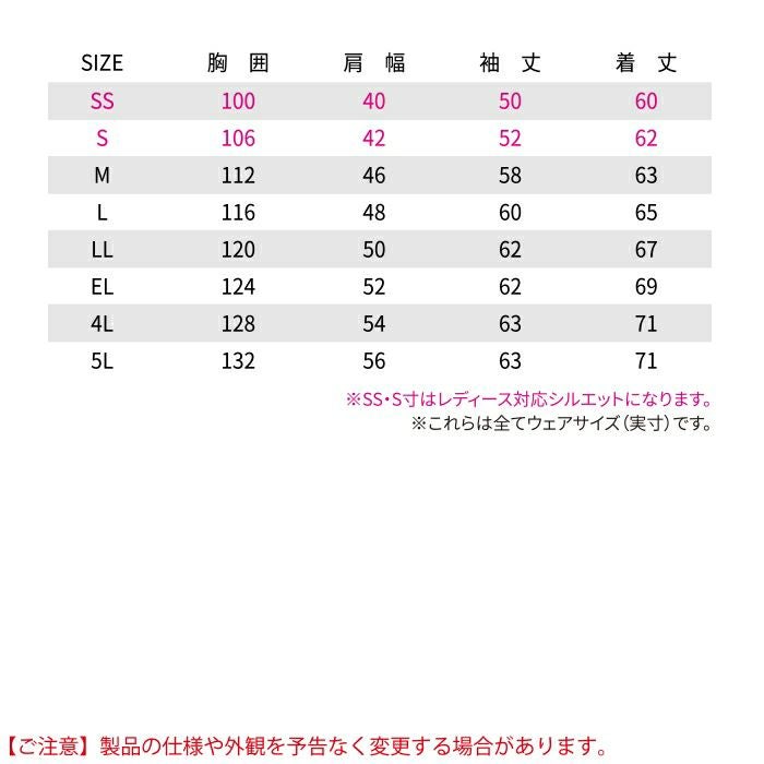 ●関連商品※72001製品制電ストレッチノータックパンツ※72002製品制電ストレッチノータックカーゴパンツ※72006製品制電ストレッチレディースパンツ※72016製品制電ストレッチレディースカーゴパンツ●オールシーズン用●素材:[身生地]ストレッチ裏綿ツイル(ポリエステル90% 綿10%)(表/ポリエステル100% 裏/ポリエステル65% 綿35%) [別生地]コーデュラナイロン100%、フロント/樹脂ファスナー、ポケット/樹脂ファスナー、ボタン/樹脂ボタン●ストレッチ、消臭、抗菌、帯電防止素材使用、野帳対応、JIS T-8118規格適合帯電防止服、ペアコーディネート、背ネーム、内ポケット、消臭&抗菌テープ(両脇・両肩)、高強度コーデュラファブリック使用(肩・脇ポケット口)、左袖ペン差し、ワンポイント(左袖)●サイズ:SS(胸囲/100、肩幅/40、袖丈/50、着丈/60)、S(胸囲/106、肩幅/42、袖丈/52、着丈/62)、M(胸囲/112、肩幅/46、袖丈/58、着丈/63)、L(胸囲/116、肩幅/48、袖丈/60、着丈/65)、LL(胸囲/120、肩幅/50、袖丈/62、着丈/67)、EL(胸囲/124、肩幅/52、袖丈/62、着丈/69)、4L(胸囲/128、肩幅/54、袖丈/63、着丈/71)、5L(胸囲/132、肩幅/56、袖丈/63、着丈/71)●カラー:ネービー、ライトブルー、シルバー、シックブラック