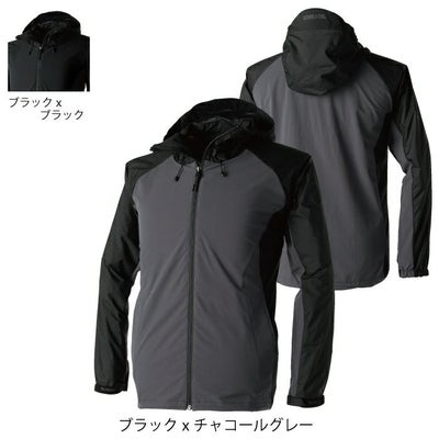 ●関連商品※84714メンズカーゴパンツ●オールシーズン用●素材:NEO撥水TS 4Dストレッチ(ポリエステル100%)・NEO撥水ストレッチマイクロリップ(アクリルコーティング/ナイロン92%・ポリウレタン8%)●超軽量、平均重量(Lサイズ)320g、4Dストレッチ、ストレッチ、耐水撥水、反射プリント、フード反射プリント、撥水フロントファスナー、左袖オリジナルワッペン、反射ロゴ入りマジックテープ●サイズ:SS(着丈/64.5、胸囲/102、裄丈/75)、S(着丈/66.5、胸囲/109、裄丈/78.5)、M(着丈/68.5、胸囲/116、裄丈/82)、L(着丈/70.5、胸囲/120、裄丈/85)、LL(着丈/72.5、胸囲/124、裄丈/88)、3L(着丈/74.5、胸囲/128、裄丈/89)、4L(着丈/76.5、胸囲/134、裄丈/91)、5L(着丈/76.5、胸囲/140、裄丈/92)、6L(着丈/76.5、胸囲/146、裄丈/93)●カラー:ブラック×チャコールグレー、ブラック×ブラック
