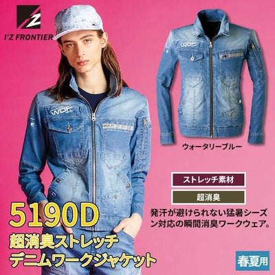 アイズフロンティア 作業服 作業着 5190D 超消臭ストレッチデニムワークジャケット S-4L 春夏用