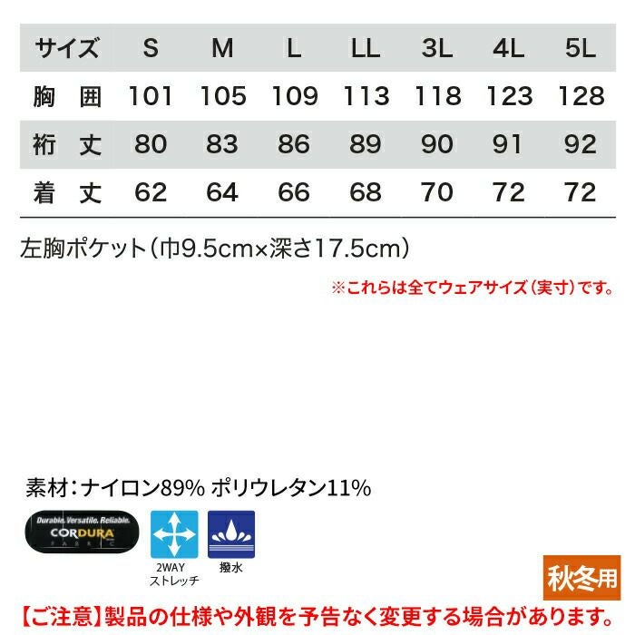 ジーベック XEBEC 作業服 秋冬用 2211 パーカー 4L-5L 作業着