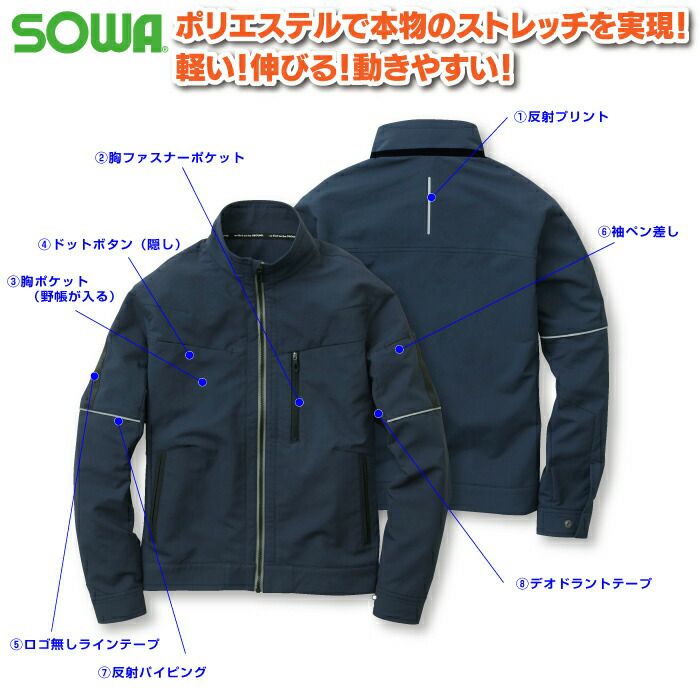 桑和 SOWA 作業服 作業着 作業ズボン 桑和 SOWA 作業服 秋冬用 8012-10 長袖ブルゾン 3L