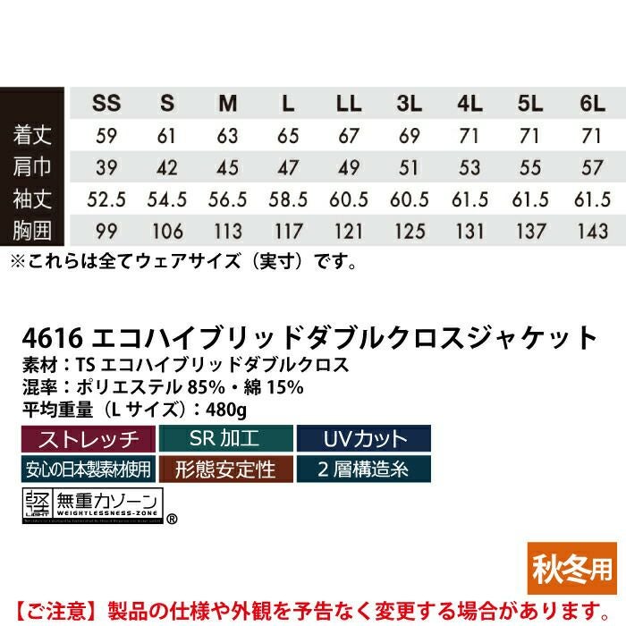 【4616 エコハイブリッドダブルクロスジャケット】