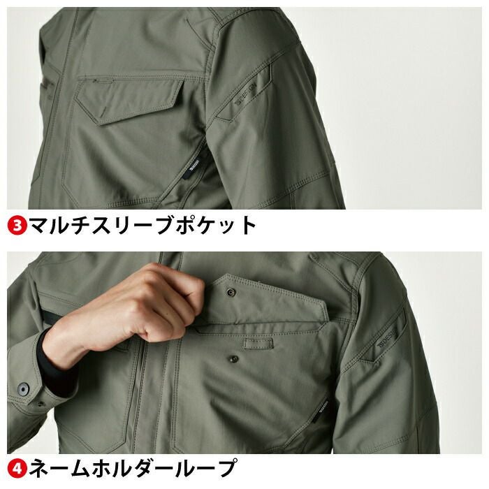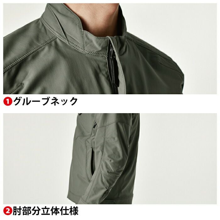 ◇機能:軽量、ストレッチ、形態安定性、2層構造糸、安心の日本製素材仕様、SR加工、UVカット、グルーブネック、肘部分立体仕様、マルチスリーブポケット、ネームホルダーループ、クイックアクセスポケット