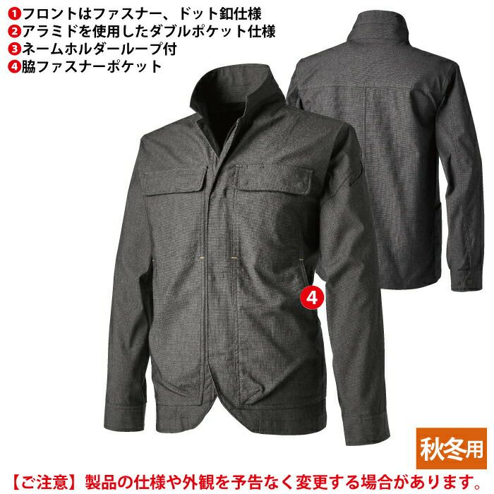 ◇機能:軽量、ストレッチ、形態安定性、2層構造糸、安心の日本製素材使用、マルチスリーブポケット、フロントはファスナー、ドット釦仕様、アラミドを使用したダブルポケット仕様、ネームホルダーループ付、脇ファスナーポケット