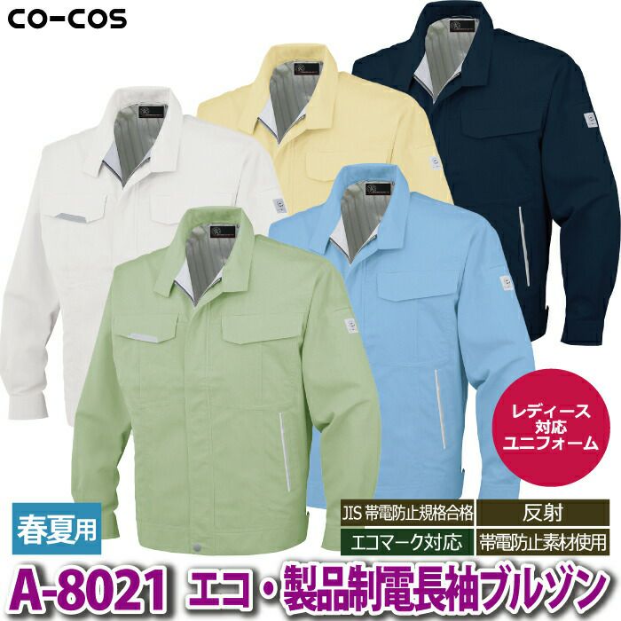 コーコス 作業服 春夏用 A-8021 エコ製品制電長袖ブルゾン SS-LL