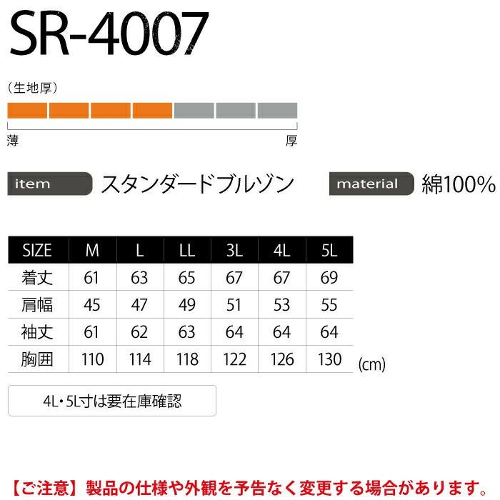 イーブンリバー EVENRIVER 作業服 SR-4007 スタンダードブルゾン 3L 春夏秋冬 作業着 おしゃれ