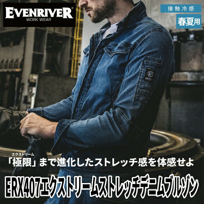 イーブンリバー EVENRIVER 作業服 ERX407 エクストリームストレッチデニムブルゾン 5L 春夏用 作業着 おしゃれ