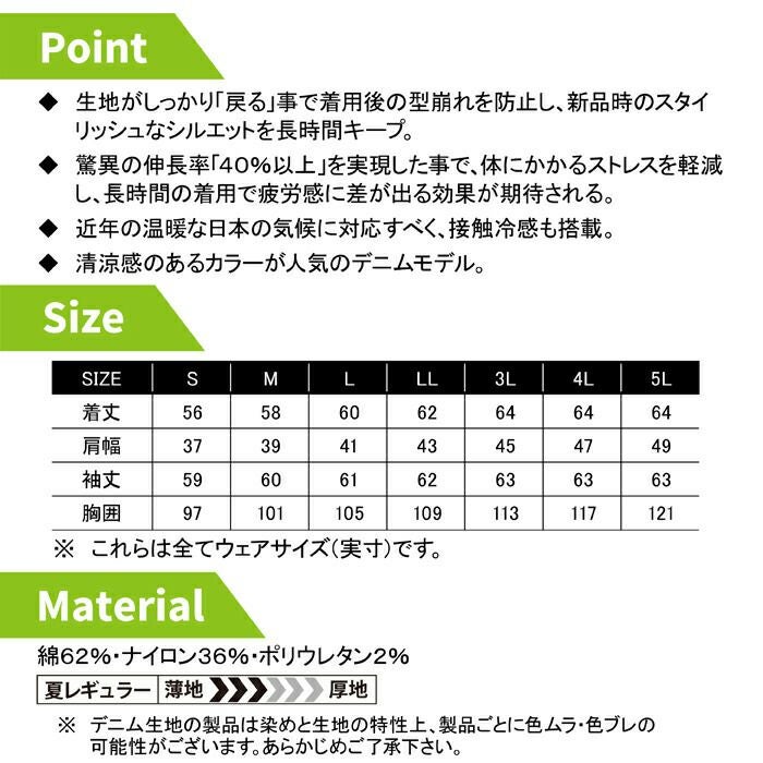 イーブンリバー 作業服 作業着 作業ズボン イーブンリバー EVENRIVER 作業服 ERX407 エクストリームストレッチデニムブルゾン 5L 春夏用 作業着 おしゃれ