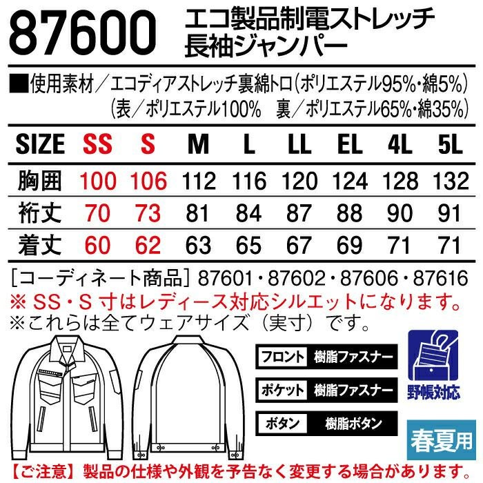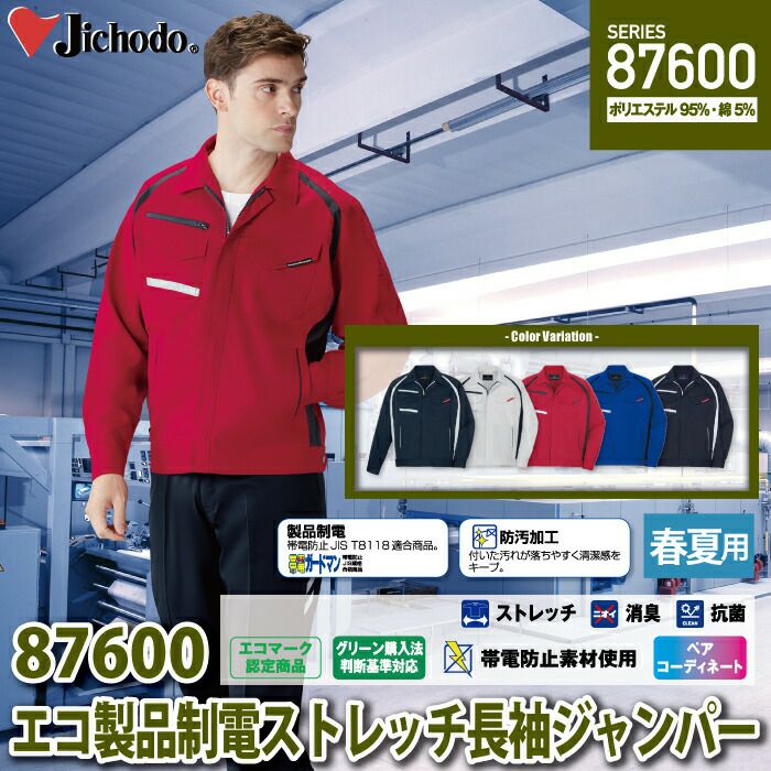 【87600 エコ製品制電ストレッチ長袖ジャンパー】