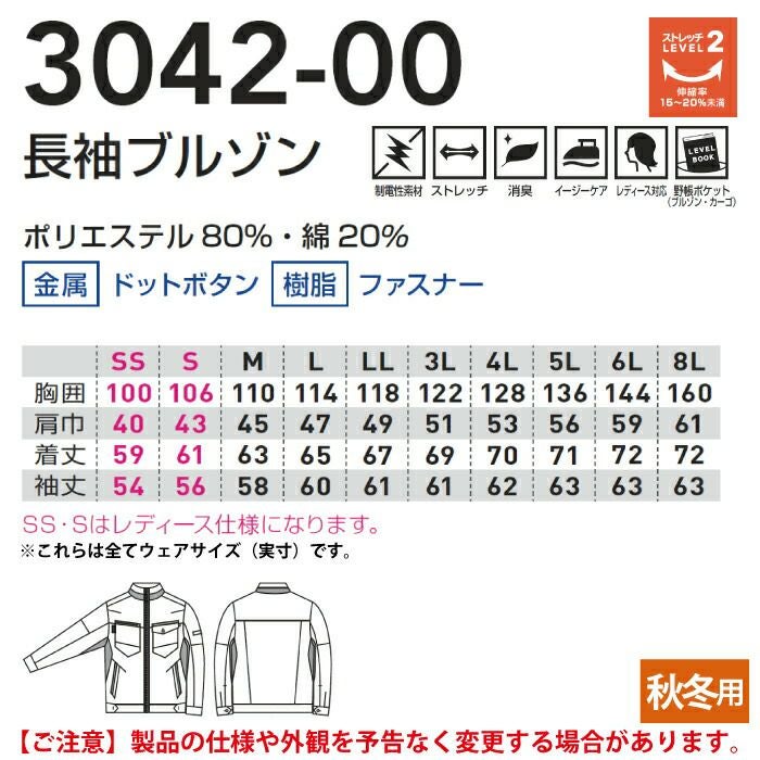 【3042-00 長袖ブルゾン】