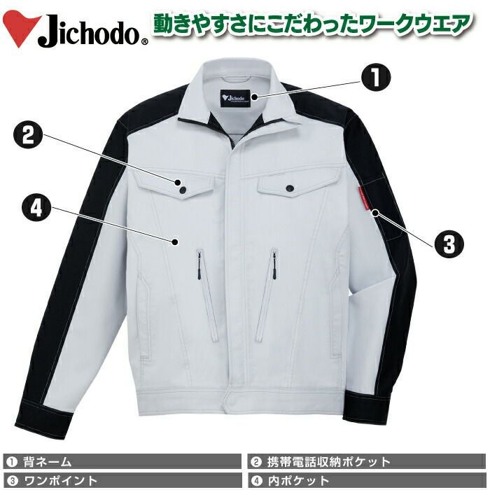 ◇機能:背ネーム・内ポケット・ワンポイント・ウイングアーム2(自重堂オリジナル仕様)・ファスナーポケット・左袖ペン差し・携帯電話収納ポケット・消臭抗菌テープ(両脇・両肩)・樹脂ファスナー(フロント・ポケット)・樹脂ボタン・野帳対応