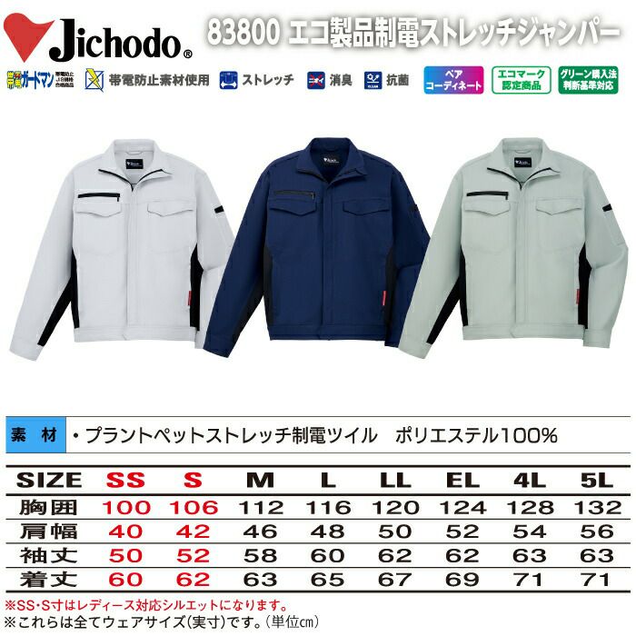 自重堂 作業服 作業着 作業ズボン 自重堂 作業服 83800 エコ製品制電ストレッチジャンパー EL 秋冬用 作業着