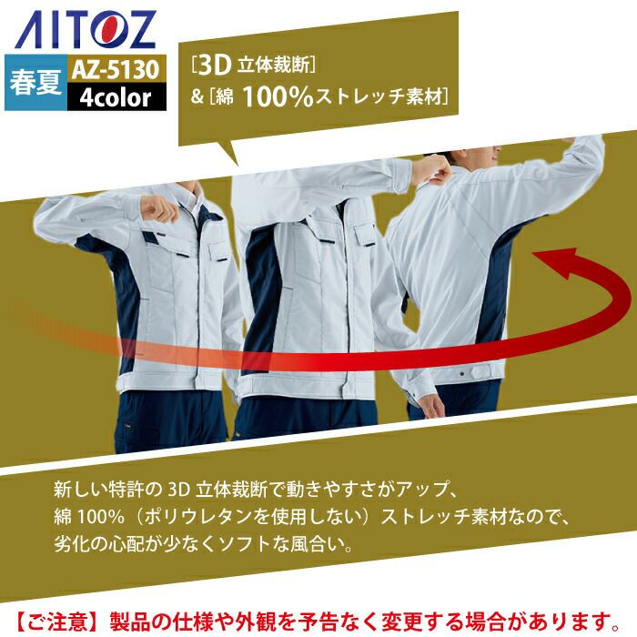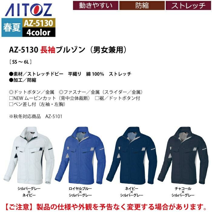 アイトス Aitoz 作業服 作業着 作業ズボン アイトス 作業服 作業着 Aitoz 春夏用 Aitoz AZ-5130 長袖ブルゾン(男女兼用) 6L