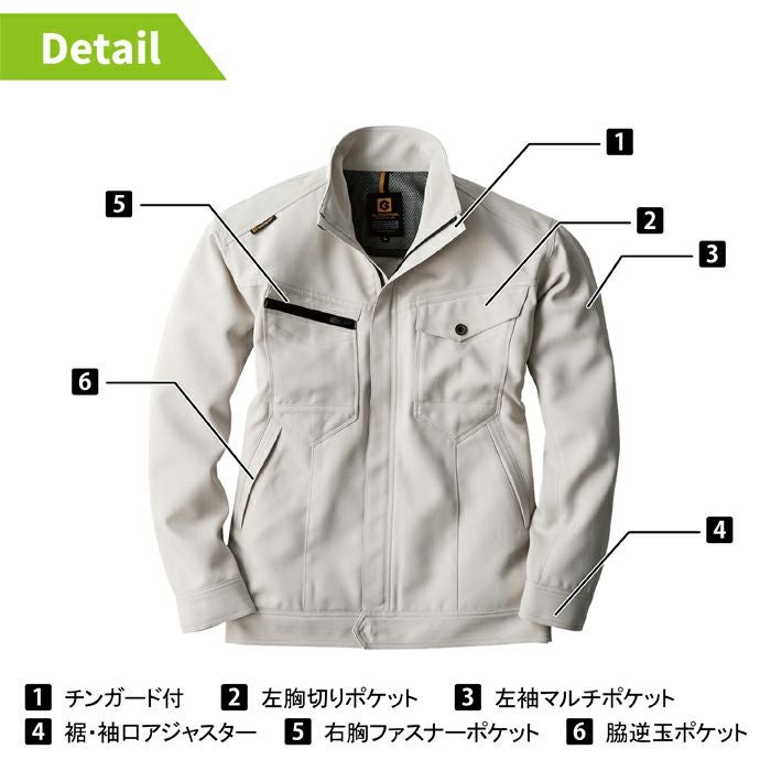 ◇右胸ファスナーポケット・チンガード付・左袖マルチポケット・裾アジャスター・袖口アジャスター・ものが落ちにくい脇逆玉ポケット・野帳が入る左胸切りポケット