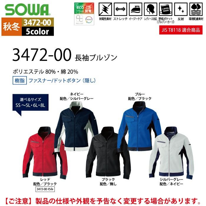 桑和 SOWA 作業服 秋冬用 3472-00 長袖ブルゾン 6L