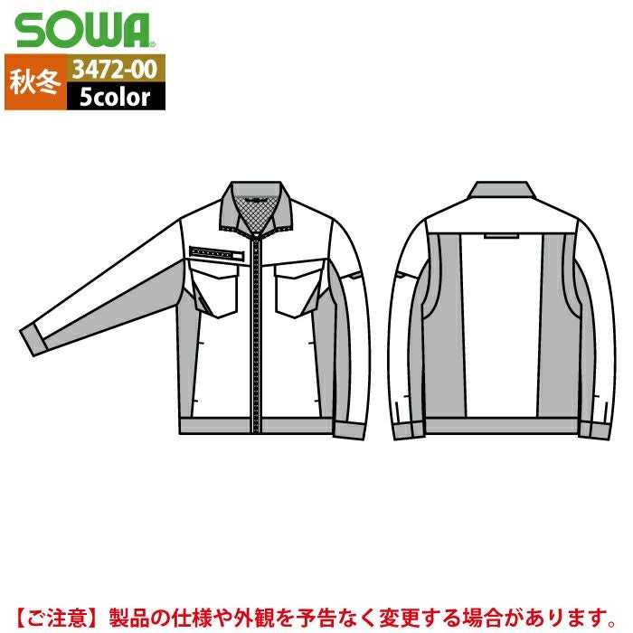 桑和 SOWA 作業服 作業着 作業ズボン 桑和 SOWA 作業服 秋冬用 3472-00 長袖ブルゾン 6L