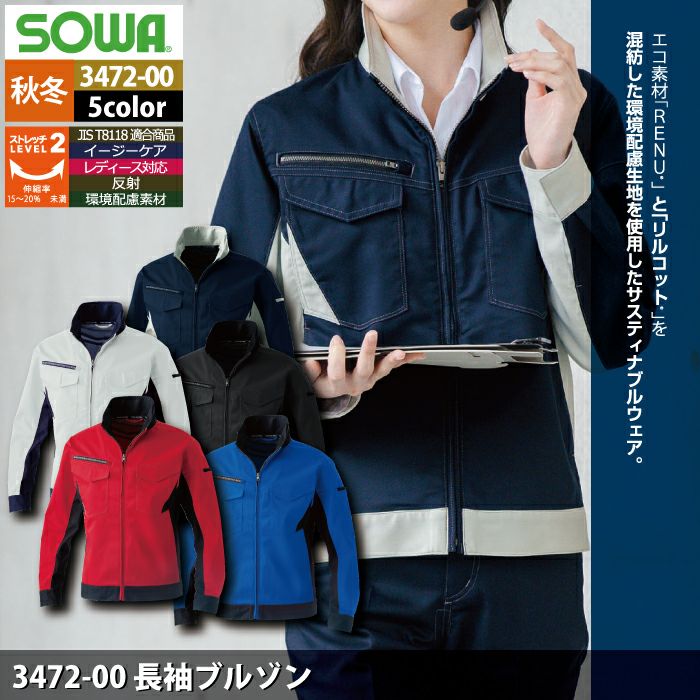桑和 SOWA 作業服 秋冬用 3472-00 長袖ブルゾン 8L
