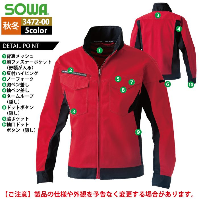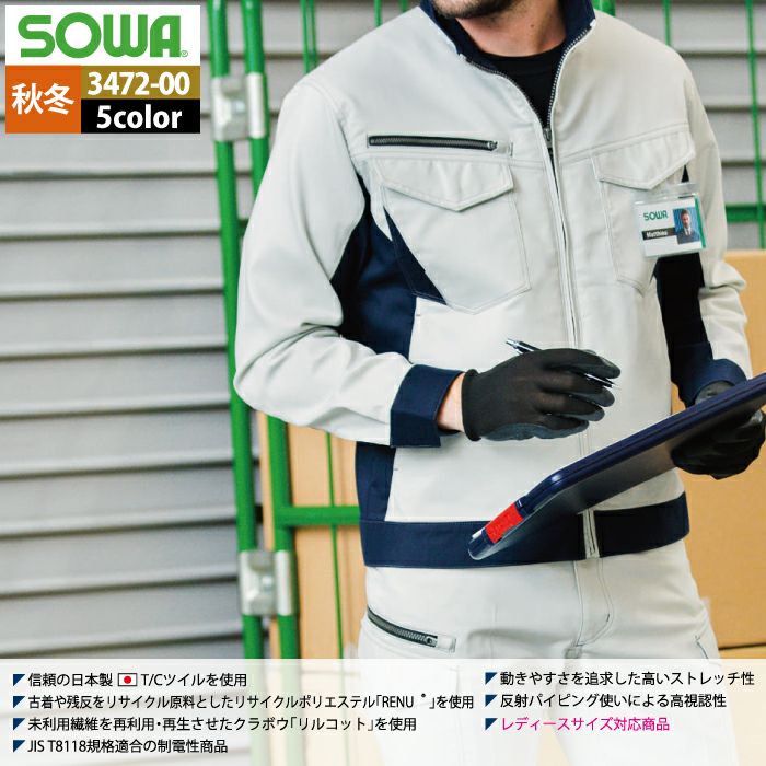 桑和 SOWA 作業服 作業着 作業ズボン 桑和 SOWA 作業服 秋冬用 3472-00 長袖ブルゾン 8L