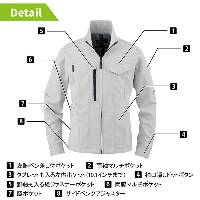 ◇機能:野帳も入る縦ファスナーポケット・両袖マルチポケット・脇マルチポケット・両袖反射材付・背中反射材付・タブレットも入る内ポケット・サイドベンツアジャスター