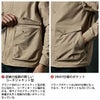 ◇機能:左袖マルチスリーブポケット・裾ドローコード付・日本製素材・ナイロン調のマット感とフラットな表面感・ストレッチ(約15%横方向)・SR加工・軽量・UVカット・袖口はオリジナルドットボタンアジャスター付・ユニセックス仕様・マルチスリーブポケット付・樹脂製ボタン使用・大容量フラップポケット(2WAY仕様)