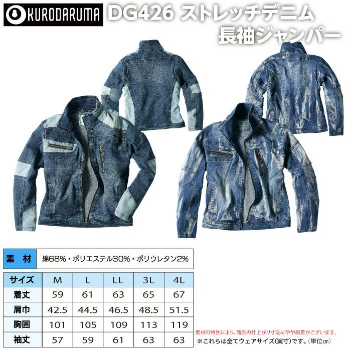 クロダルマ 作業服 DG426 ストレッチデニム長袖ジャンパー M-LL オールシーズン