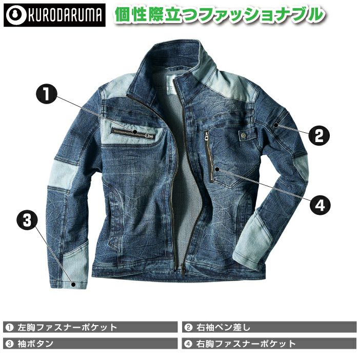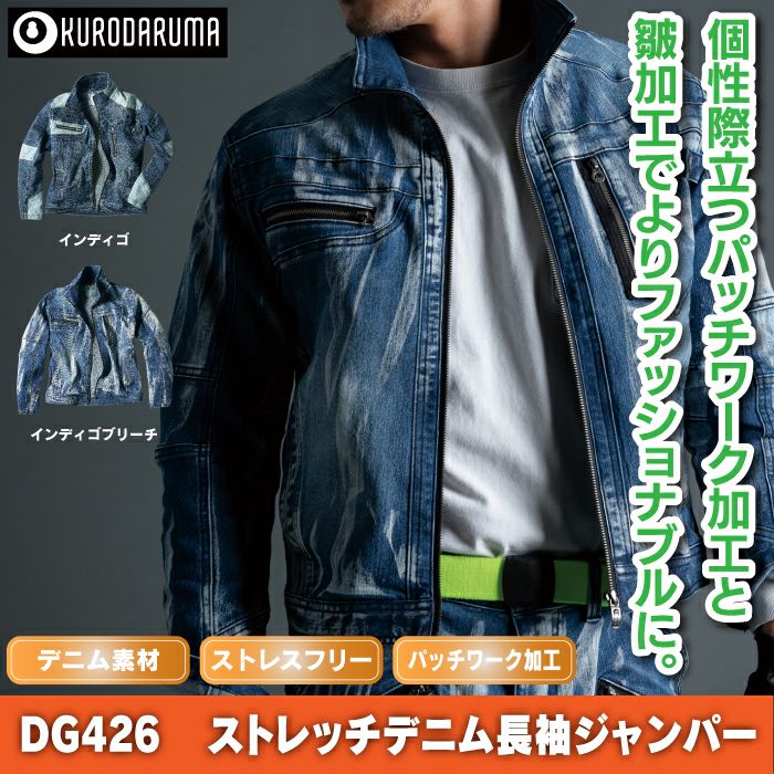 クロダルマ 作業服 DG426 ストレッチデニム長袖ジャンパー 3L-4L オールシーズン