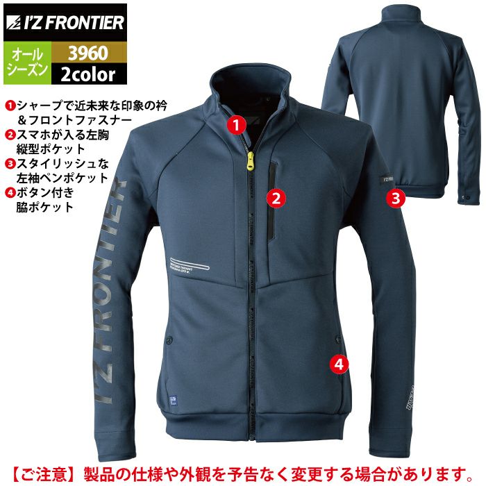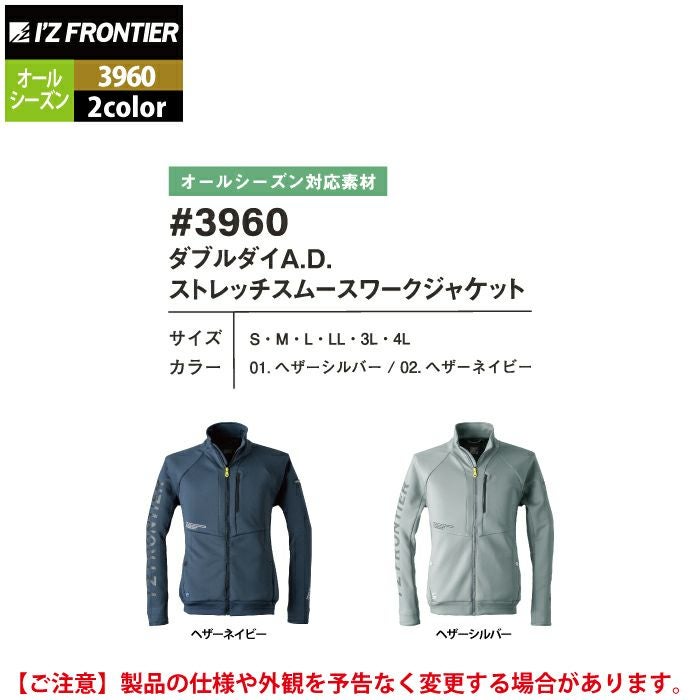 アイズフロンティア 作業服 3960 ダブルダイADストレッチスムースワークジャケット S-4L オールシーズン