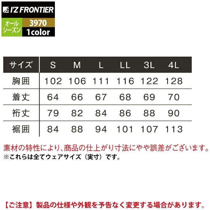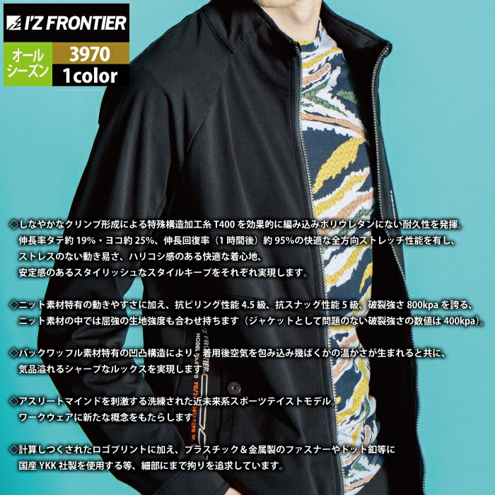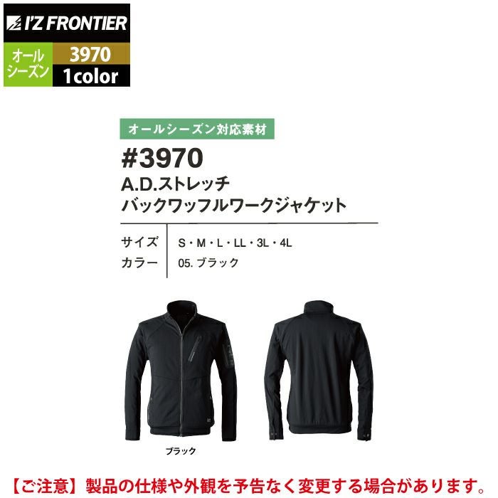 アイズフロンティア 作業服 3970 ADストレッチバックワッフルワークジャケット S-4L オールシーズン