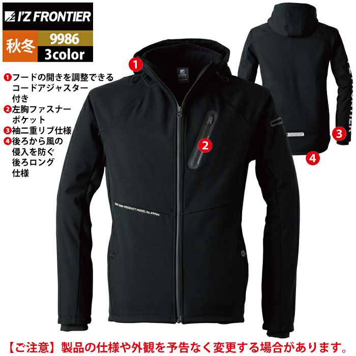 アイズフロンティア 作業服 9986 防風ADストレッチワークパーカー S-4L 秋冬用