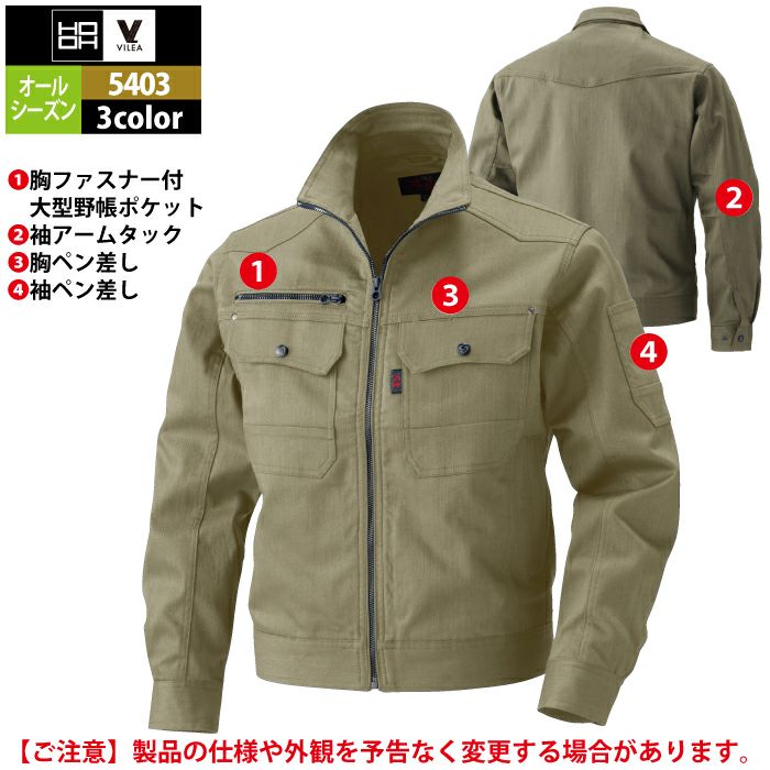◇機能:スーパーストレッチ・タテムラ糸・カジュアルスタイル・胸ファスナー付き大型野帳ポケット・袖アームタック・胸ペン差し・袖ペン差し