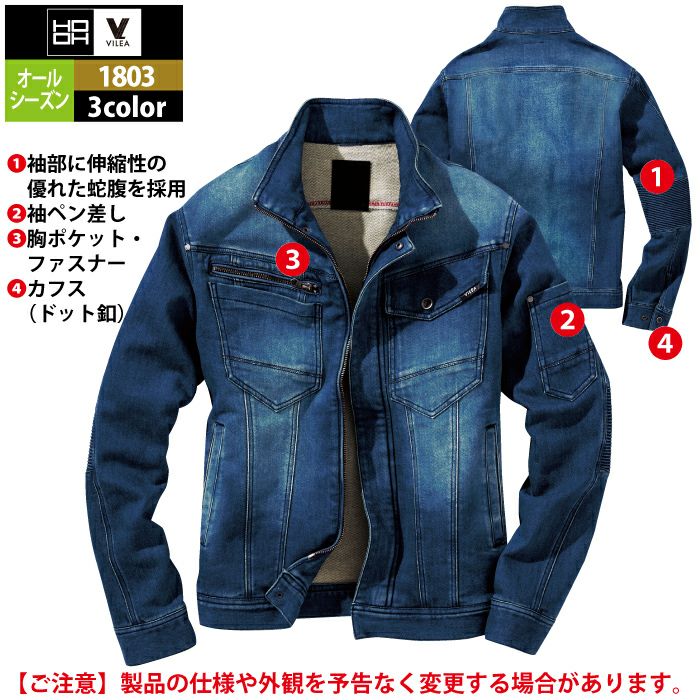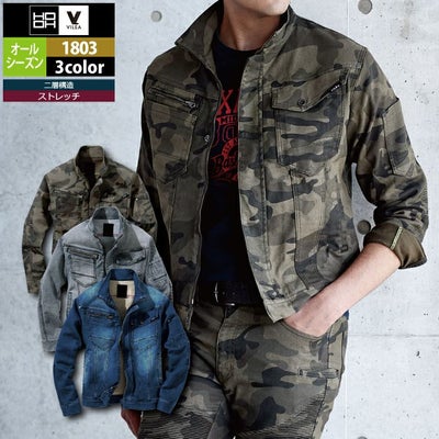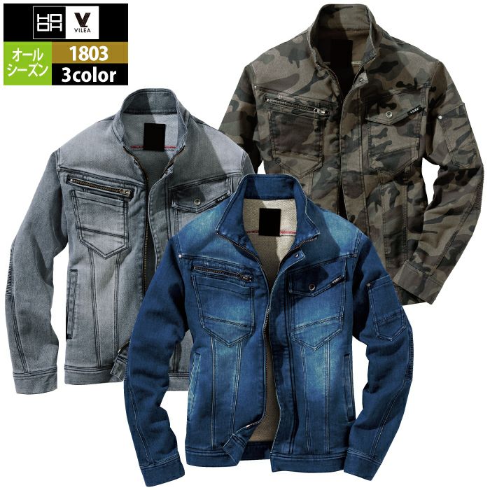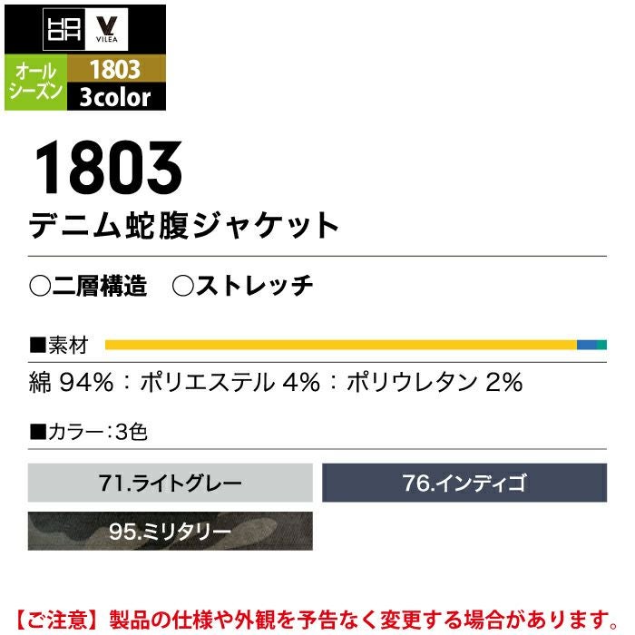 村上被服 HOOH 鳳凰 作業服 作業着 村上被服 HOOH 鳳凰 作業服 1803 デニム蛇腹ジャケット M-3L