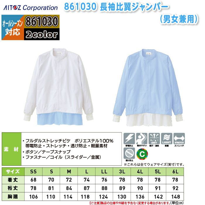アイトス 作業服 作業着 Aitoz 861030 長袖比翼ジャンバー(男女兼用) SS-6L