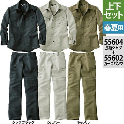 自重堂 JAWIN ジャウィン 作業服 上下セット 55604 長袖シャツ と 55602 ノータックカーゴパンツ S-LL ズボン 春夏用 作業着