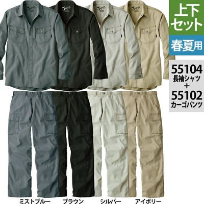 自重堂 JAWIN ジャウィン 作業服 上下セット 55104 長袖シャツ と 55102 ノータックカーゴパンツ S-LL ズボン 春夏用 作業着