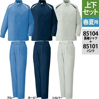 自重堂 作業服 上下セット 85104 エコ製品制電長袖シャツ と 85101 エコ製品制電ワンタックパンツ SS-LL ズボン 春夏用 かっこいい おしゃれ 作業着