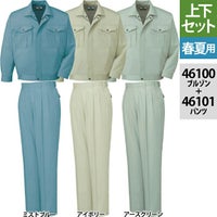 自重堂 作業服 上下セット 46100 エコ長袖ブルゾン と 46101 エコツータックパンツ S-LL ズボン 春夏用 かっこいい おしゃれ ズボン 作業着