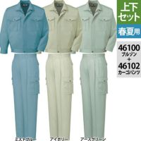 自重堂 作業服 上下セット 46100 エコ長袖ブルゾン と 46102 エコツータックカーゴパンツ S-LL ズボン 春夏用 かっこいい おしゃれ ズボン 作業着